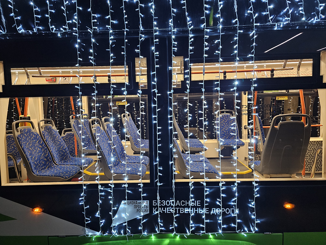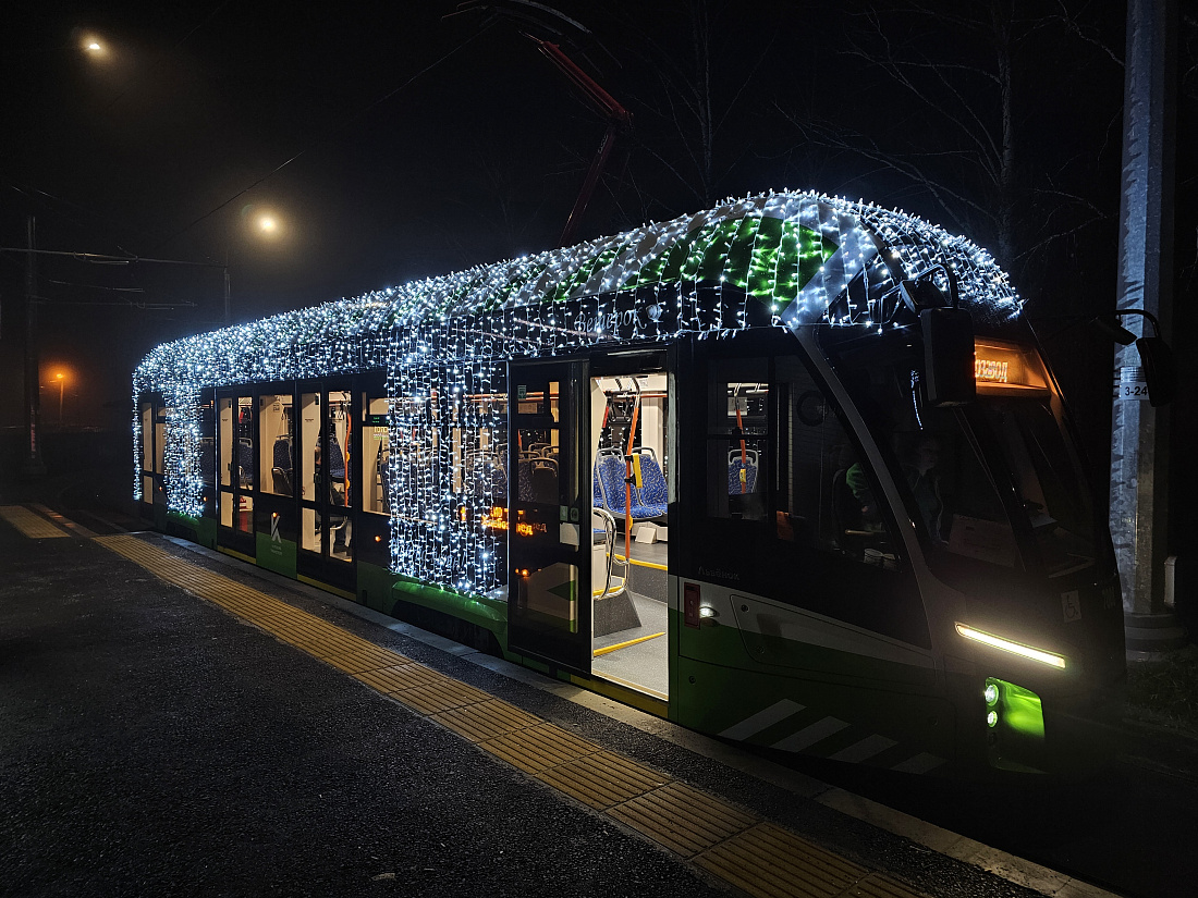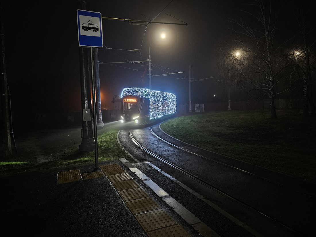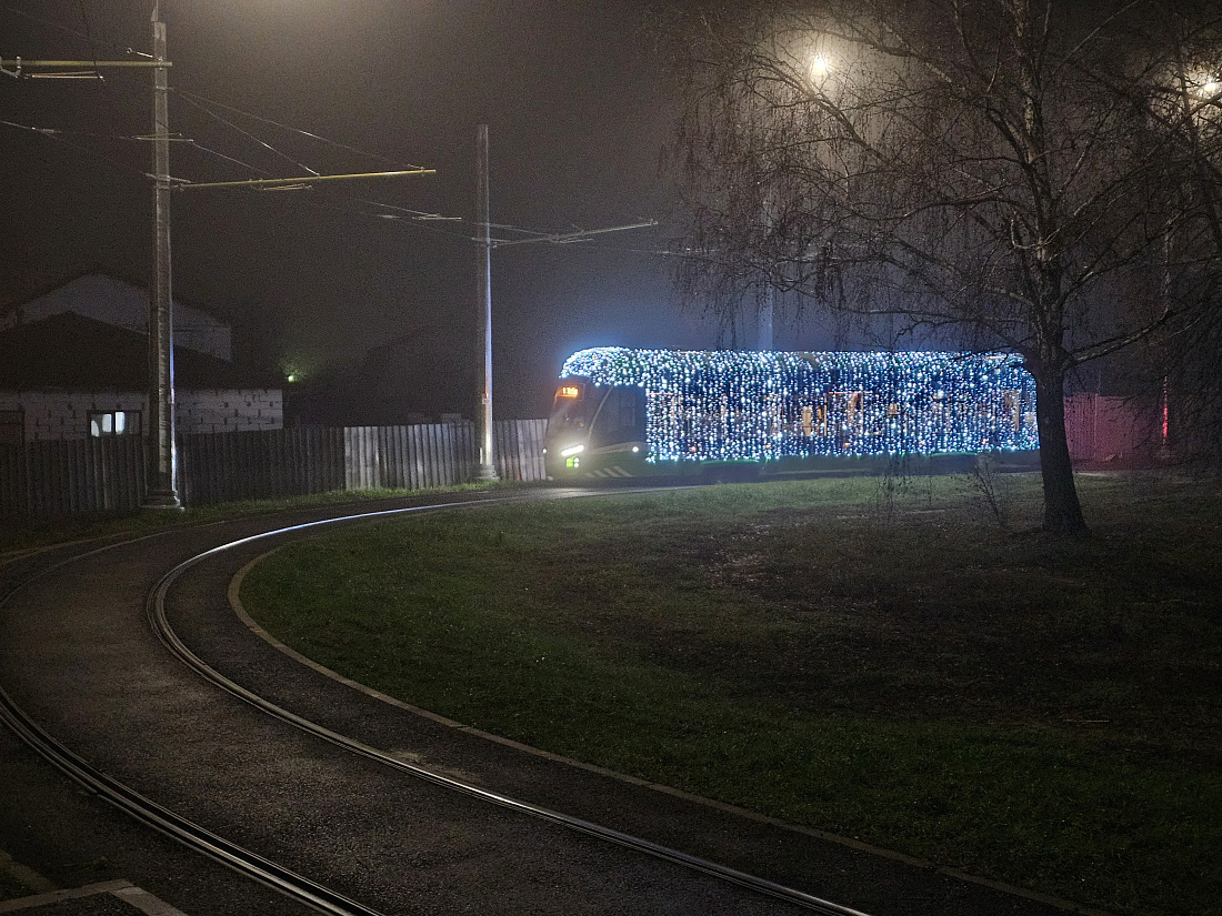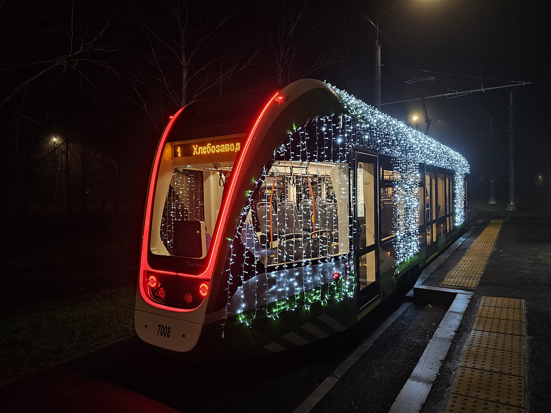 С 3 декабря вагон №7008, украшенный гирляндами, работает на маршруте №1 «Хлебзавод» — «ЗАО КПК». На его оформление ушло 500 м иллюминации.