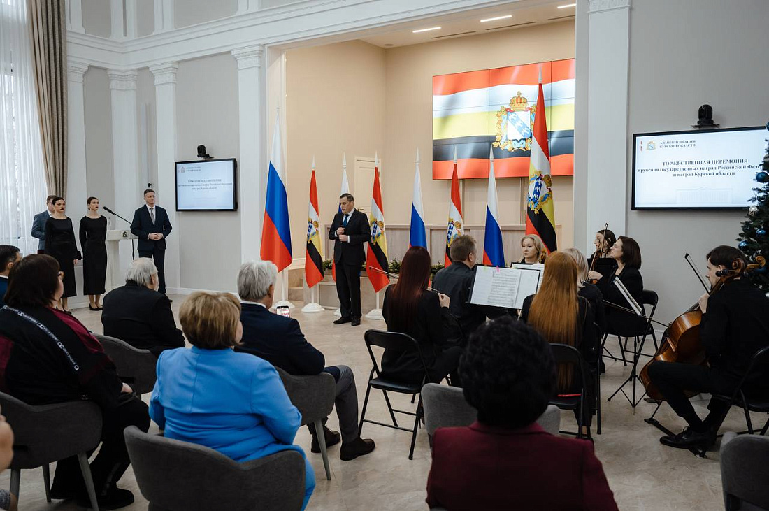 Губернатор Курской области Александр Хинштейн вручил курянам государственные и региональные награды.