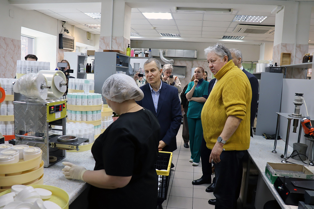 И.о. губернатора Курской области Александр Чепик с рабочим визитом посетил малое предприятие ООО «Клеона», которое занимается разработкой и производством высококачественной уходовой косметики для лица и волос, а также натурального мыла. Здесь создали более 600 рецептур натуральных косметических средств. Продукцию реализуют не только в России, но и в Беларуси, Киргизии, Казахстане и Армении.