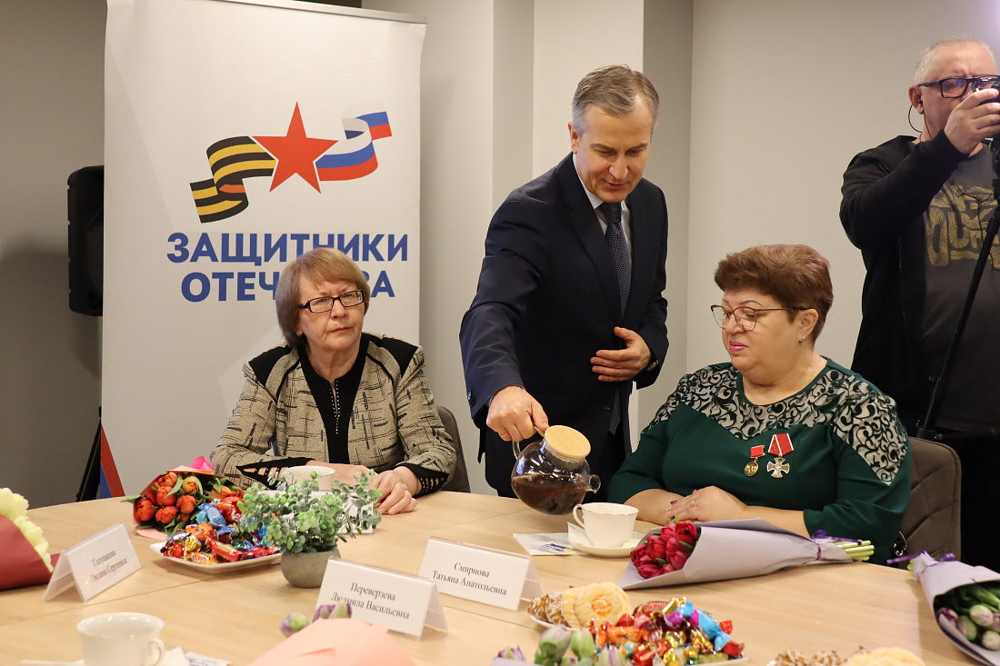 Исполняющий обязанности губернатора вручил цветы мамам и женам погибших героев в преддверии Международного женского дня и пообщался с ними.