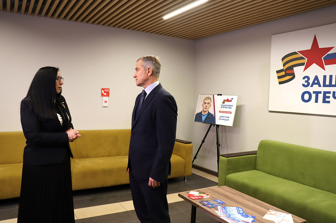 Александр Чепик посетил площадку фонда впервые. Он ознакомился с организацией работы, руководитель филиала Татьяна Банникова рассказала о том, какую помощь оказывают социальные координаторы ветеранам СВО и членам их семей.