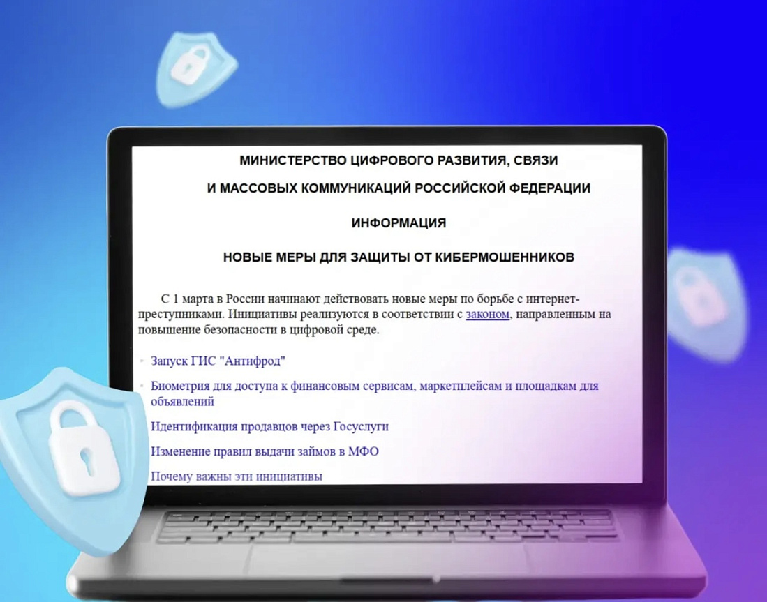 С 1 марта начали действовать новые меры для предотвращения преступлений в киберпространстве. Инициативы реализуются в соответствии с законом, направленным на обеспечение безопасности граждан в цифровой среде. Защита государственных цифровых сервисов и услуг осуществляется в соответствии с нацпроектом «Экономика данных».