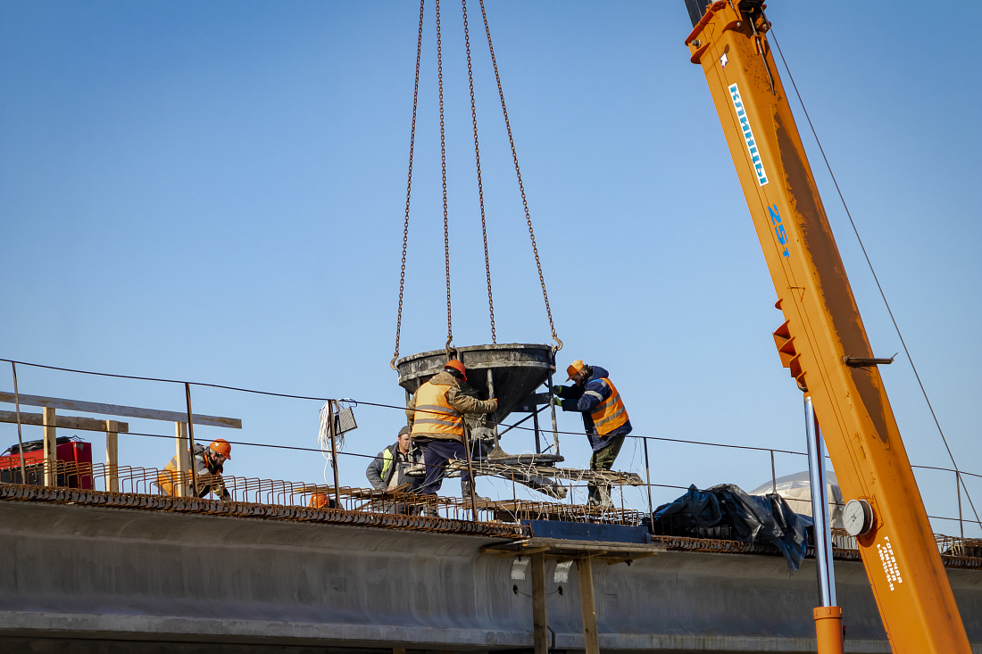 С наступлением благоприятных погодных условий подрядная организация продолжит строительство объекта, дорожники выполнят укладку верхнего слоя асфальтобетонного покрытия, а также проведут работы по устройству наружного освещения, установке светофорных объектов и комплексному благоустройству прилегающей территории.