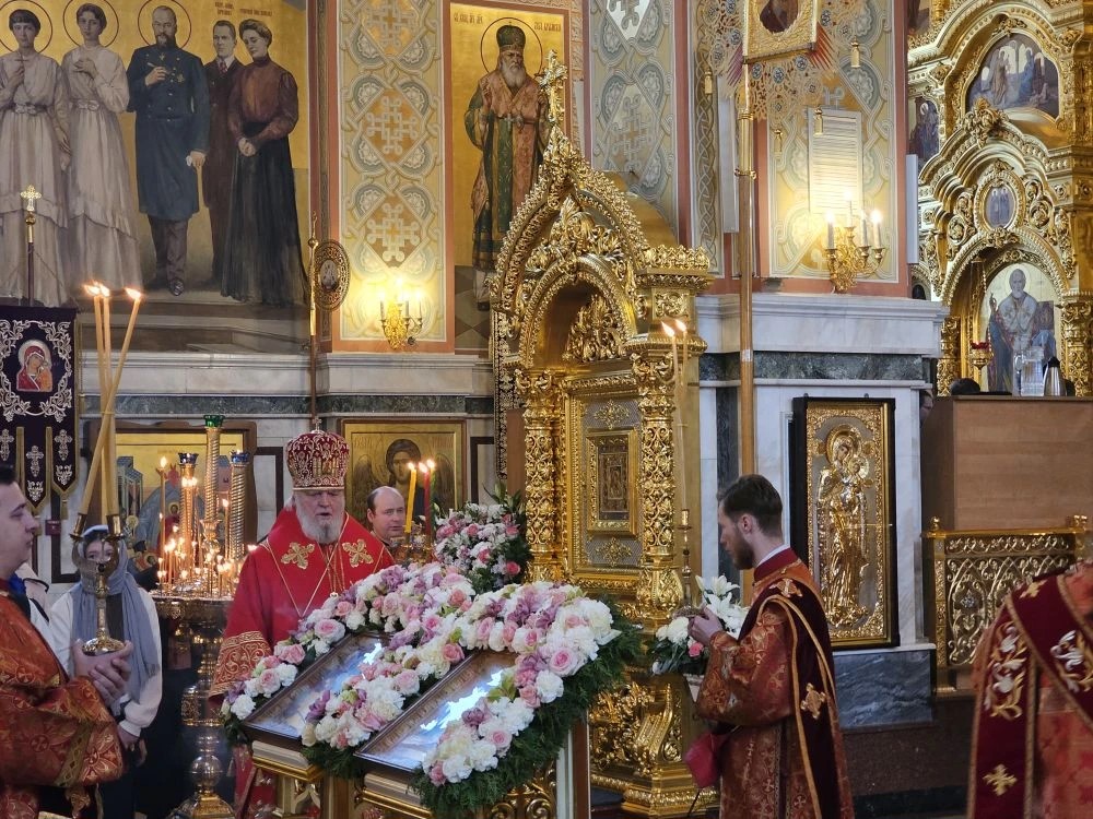 Визит состоялся в день престольного праздника обители — в пятницу Светлой седмицы, когда совершается празднование иконы Божией Матери «Живоносный Источник». Участники делегации приняли участие в Божественной литургии и водосвятном молебне в соборном храме Рождества Пресвятой Богородицы, которые возглавил митрополит Герман. По окончании богослужения состоялся крестный ход вокруг собора с чтением Евангелия и исполнением пасхальных песнопений. Делегации было преподано архипастырское благословение.