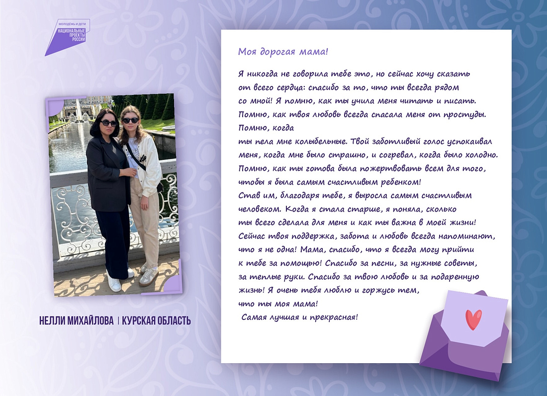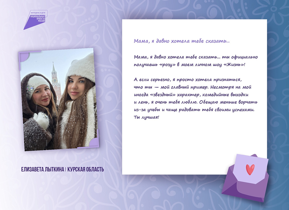 К Международному женскому дню участники нацпроекта «Молодёжь и дети» Курской области написали письма своим мамам.