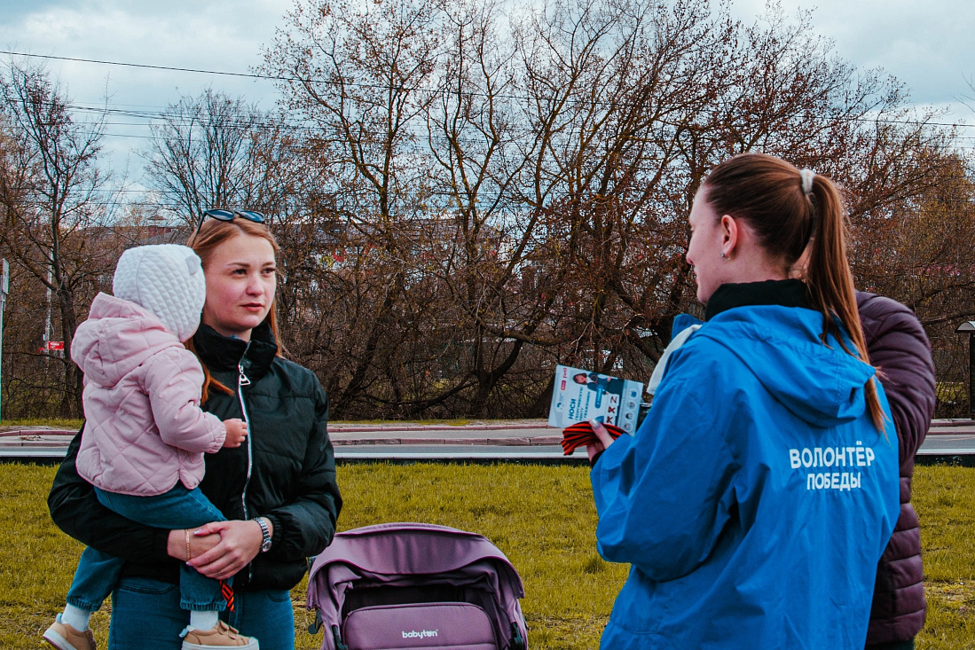Активисты регионального отделения движения «Волонтеры Победы» дали старт ежегодной акции «Георгиевская ленточка» в Курске. Они вручали георгиевские ленты курянам на проспекте Победы.