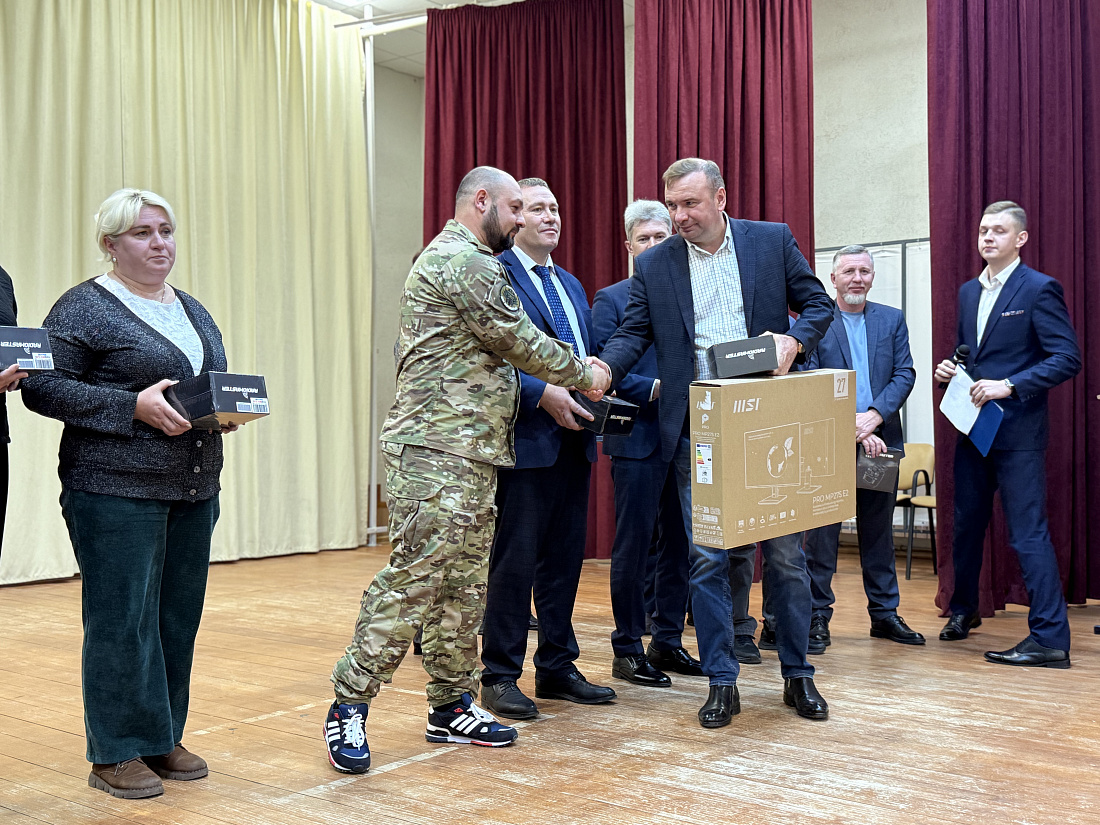 Радиоконтроллеры и компьютеры представителям 14 колледжей и техникумов передали заместитель директора ООО «Черновецкие зори» Милен Берлизев совместно с сопредседателем штаба Народного фронта в Курской области Олегом Хилько.