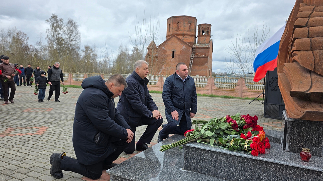 В День памяти жертв геноцида армян в Курске состоялась церемония возложения цветов к памятному знаку – Хачкару. В мероприятии приняли участие заместитель губернатора Курской области Сергей Фофанов, председатель Курского регионального отделения Союза армян России Дереник Коштоян, сотрудники Министерства внутренней политики региона, воспитанники спортивных школ.