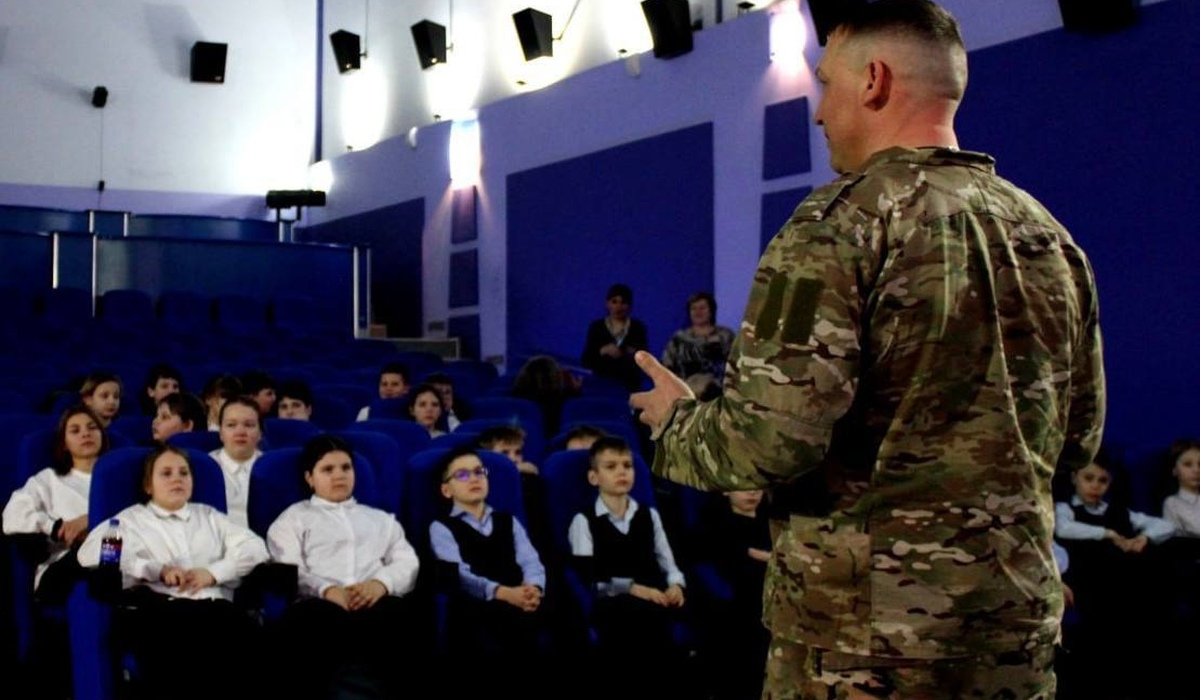 11 марта 2026 г. в рамках проекта «Победили тогда, победим и сейчас!» состоялась встреча учащихся средних общеобразовательных школ г. Курска с добровольцем разведывательной роты бригады «БАРС-Курск», позывной «Тайга». Основной темой встречи стала профилактика угроз террористического характера в современных условиях.