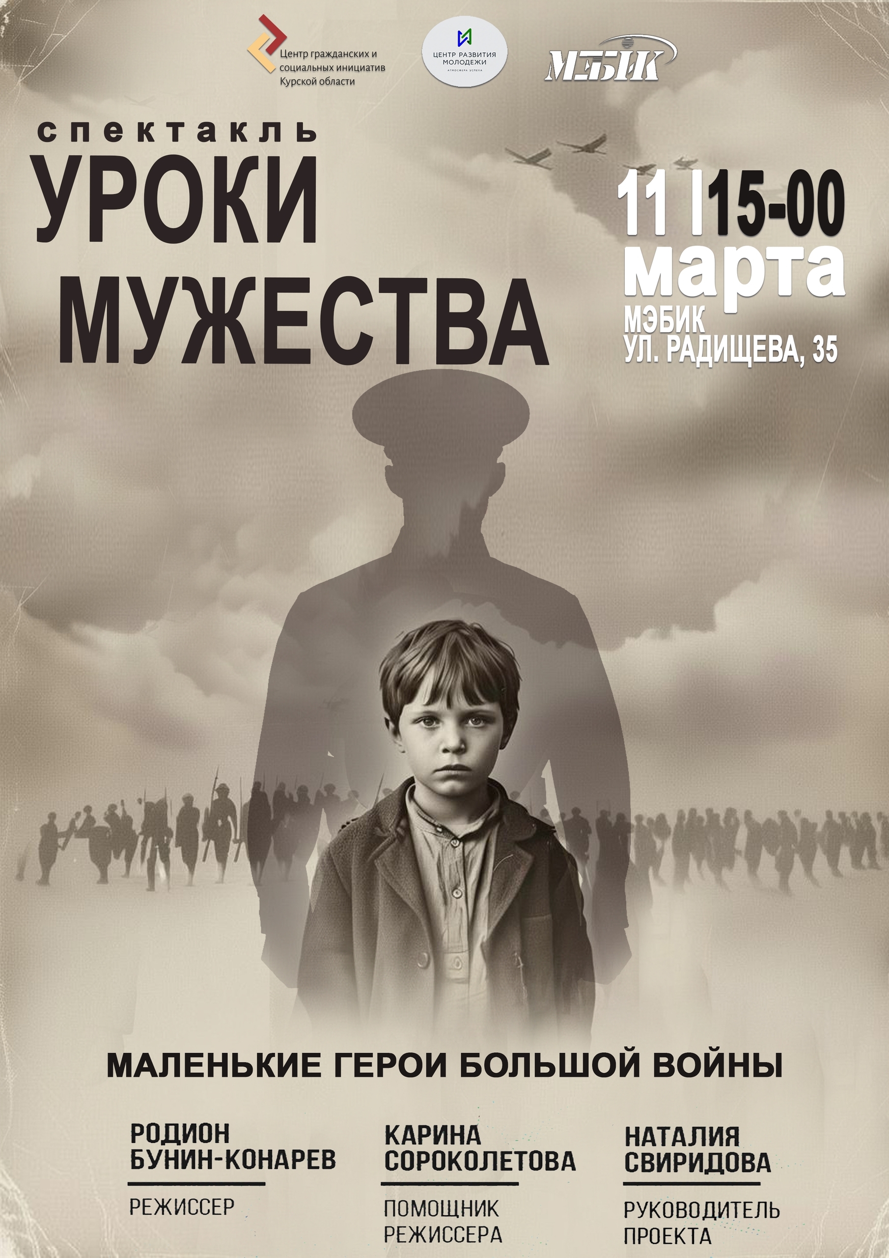 11 марта 2026 г. накануне годовщины освобождения г. Суджа Курской области от неонацистских формирований в рамках гранта КРОО «Центр развития молодежи» при поддержке АНО «Центр гражданских и социальных инициатив Курской области» совместно с Курским институтом менеджмента, экономики и бизнеса реализуется патриотический проект «Формула победы Соловьиного края». В рамках реализации указанного проекта в г. Курске состоялась премьера спектакля «Уроки мужества». Данная постановка посвящена детям, чье детство пришлось на период оккупации Курской области нацистами в годы Великой Отечественной войны. Важной частью мероприятия стала тематическая выставка, организованная перед началом спектакля. Экспозиция состояла из трех информационных баннеров, посвященных ключевым этапам Великой Отечественной войны. В постановке прослеживается схожесть преступлений в отношении гражданского населения, совершенных современными неонацистами в ходе вторжения в курское приграничье и фашистов в годы Великой Отечественной войны.