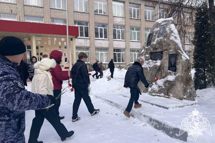 13 февраля 2026 г. в преддверии Дня памяти о россиянах, исполнявших служебный долг за пределами Отечества, по инициативе комитета образования г. Курска с воспитанниками кадетских классов общеобразовательных школ № 14, 15, 17, 30, 31, 36, 53 и 60 г. Курска состоялись «уроки мужества» с участниками СВО, КТО на территории региона – ветеранами боевых действий, сотрудниками и военнослужащими УФСВНГ России по Курской области. В ходе профилактических мероприятий обучающиеся были проинформированы о роли силовых структур в противодействии террористической и экстремистской деятельности, в том числе в период вооруженного конфликта на территории Афганистана, КТО на Северном Кавказе, СВО на Украине. Подшефные воспитанники вместе с росгвардейцами возложили цветы к памятнику военнослужащим, погибшим при исполнении воинского долга, установленному на территории МБОУ «СОШ № 15», и почтили их память минутой молчания.
