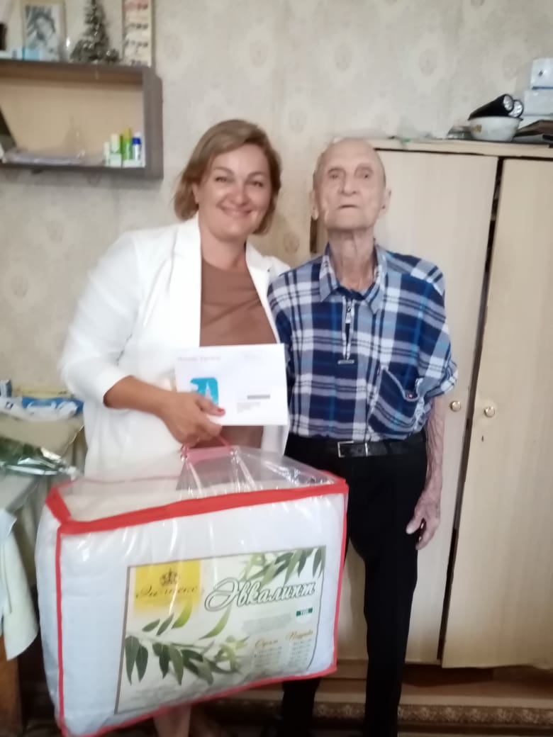 Персональные поздравления Президента Российской Федерации В.В. Путина, памятные сувениры от Администрации Октябрьского района Курской области вручили глава муниципального образования «поселок Прямицыно» Октябрьского района Курской области О. Н. Стародубцева и начальник отдела социального обеспечения Администрации Октябрьского района Курской области Л. В. Ломакина.