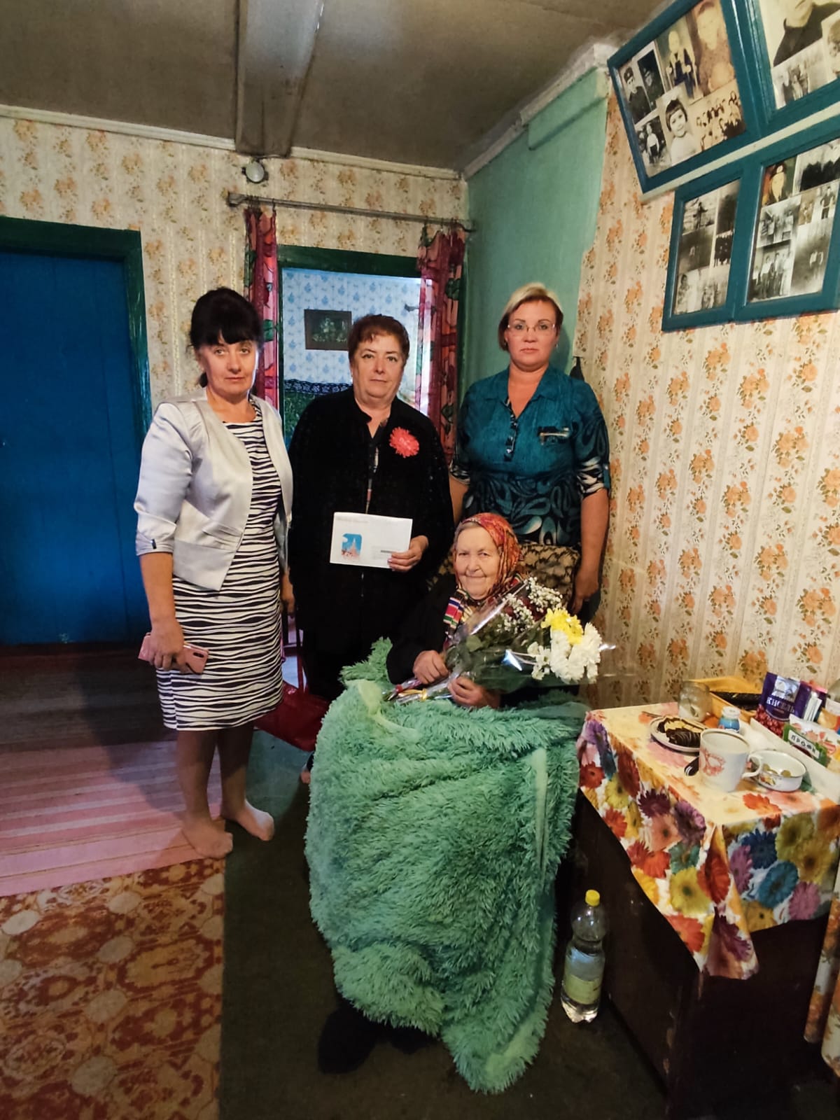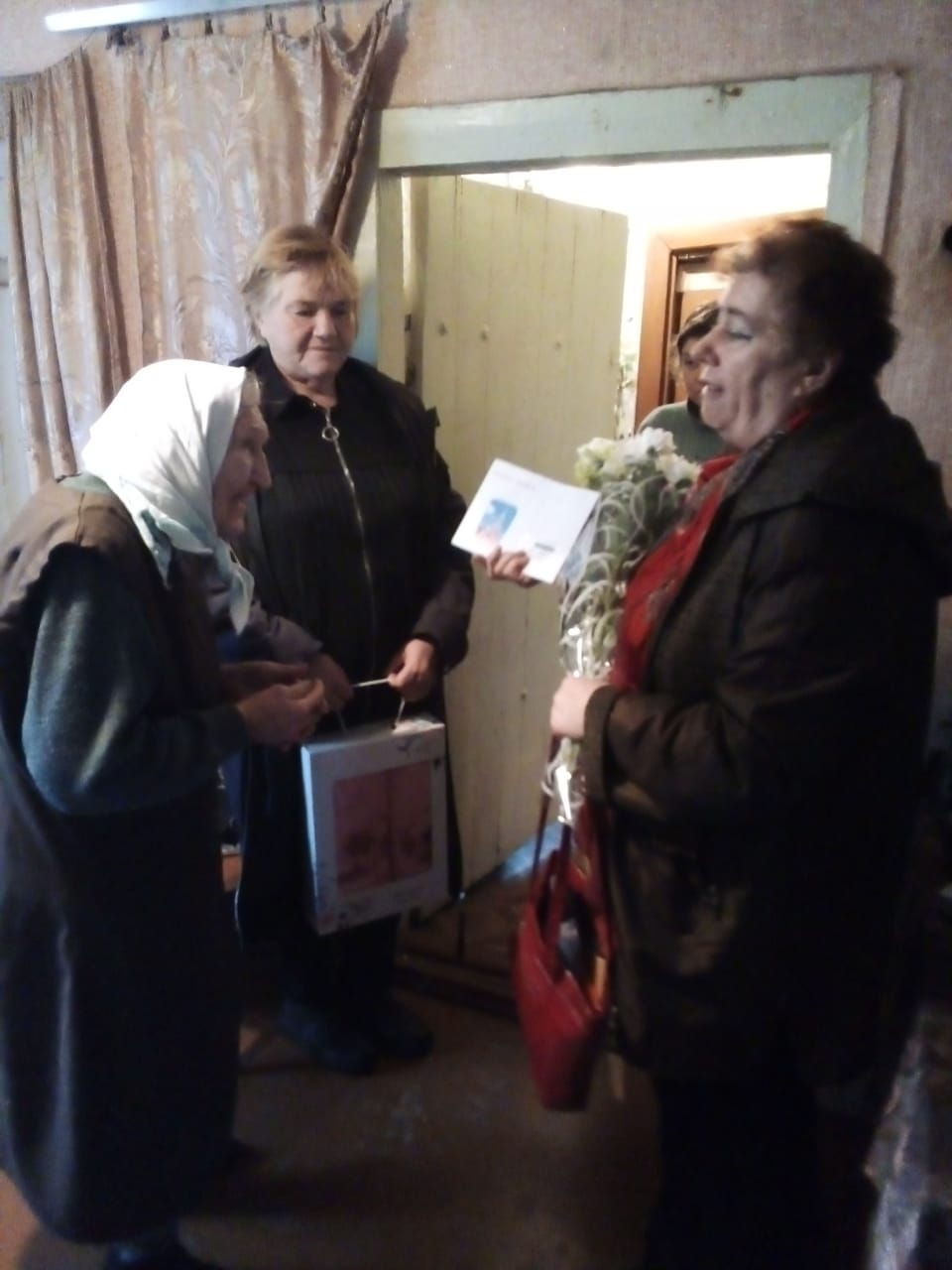 Персональные поздравления Президента Российской Федерации В.В. Путина, памятные сувениры от Администрации Октябрьского района Курской области вручили начальник отдела социального обеспечения Администрации Октябрьского района Курской области Л.В. Ломакина, глава муниципального образования «Плотавский сельсовет» Октябрьского района Курской области Л. В. Ельникова, глава муниципального образования «Черницынскй сельсовет» Октябрьского района Курской области А.В. Котов.