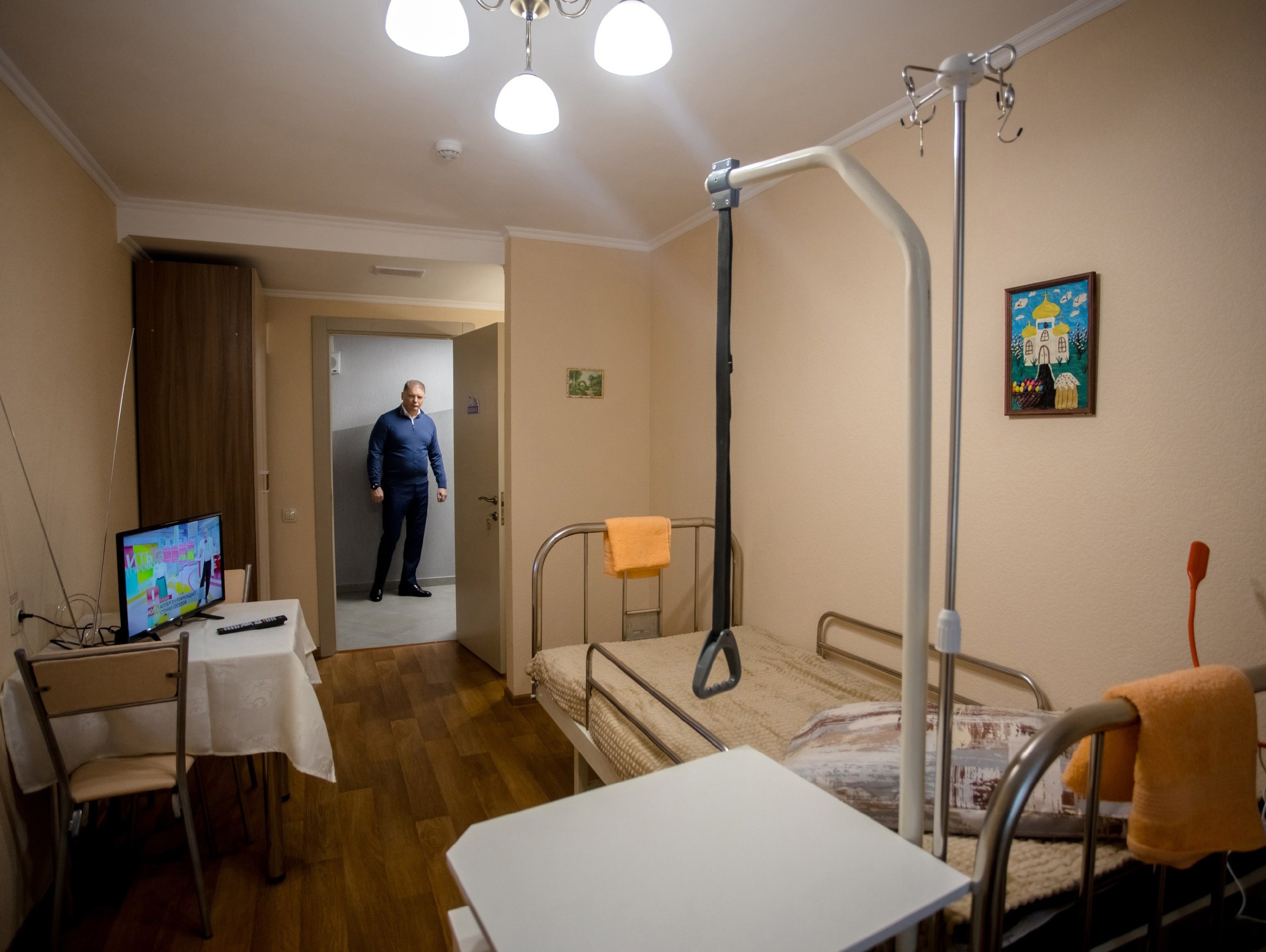 В ходе посещения отремонтированного корпуса Роман Старовойт осмотрел отделение для дневного пребывания, отделение для людей, попавших в трудную жизненную ситуацию, социально-медицинское отделение, а также познакомился с отделением – пансионатом для участников СВО.